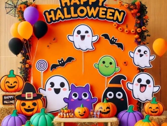 • 1 8*8 size Backdrop Board (Orange with “HAPPY HALLOWEEN” Topper)