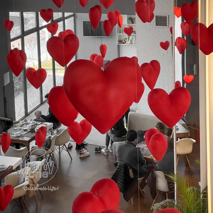 • 40 thermocol 3D heart hangings on the ceiling.
