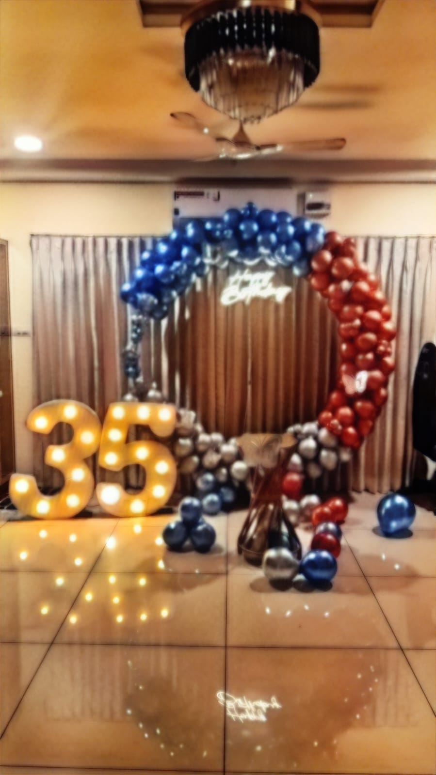 Celebrating your wedding anniversary at home can be simple, but still, you can make it a memorable and unique surprise for your partner on your anniversary. Start with simple anniversary decoration, wall decoration, ceiling balloon decoration, cabana decoration, canopy decoration. The important things that can increase the celebration to be more unique are LED lights, photo hangings, soft fabric drapes which are in light colours. Couples who love a vibrant vibe, red and white balloon decoration is a popular choice. You can opt for normal balloons or metallic accent balloons with fresh flowers to complete the decoration. Whether it’s your first or 50th anniversary decoration, what matters most is the effort you put into it. Even a small balcony or bedroom can be changed into a romantic celebration place. If you’re short on time, PartyOne’s home decorators for anniversary events can help you get the decoration into reality. Whether you’re planning for grand decoration or a minimalist approach, thoughtful room decoration for anniversary celebration can turn a simple evening into a memorable moment.