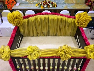 Announcing your baby's name to close friends and family for the first time is an exciting event that deserves a special namkaran ceremony celebration. It is among the greatest joys for any parent to name their offspring. However, organizing a party, whether a modern or a traditional one, is not simple. Cradle ceremony involves a lot of activities, from planning to catering, entertaining, serving, and cleaning. If you are a new parent, it clearly won't be easy to do all these tasks single-handedly. Even if a friend or a family member decides to do the job, you cannot trust their taste, as they are not professionals. In such situations, you can turn to PartyOne. We have been one of the top organizers of naming ceremony services for decades. Whether a naming ceremony celebration, a corporate event, a birthday celebration, or an anniversary, we provide top-notch services that the guests will remember for years! Our naming ceremony decoration at home professionals ensure the event goes exactly as you expected. They do everything, from flower decoration to balloon decoration, invitation prints, photography, choosing a theme, involving your friends and family, and adding fun elements like mascots to ensure the ceremony goes as you expected. Our cradle ceremony decoration planners ensure everyone has a lovely time, and your little bundle of joy does not get too overwhelmed by the crowd. Even if you have any last-minute requests, you can ask our professionals to arrange for it and they will do so without any questions.