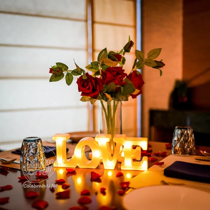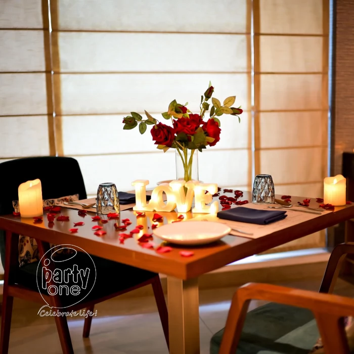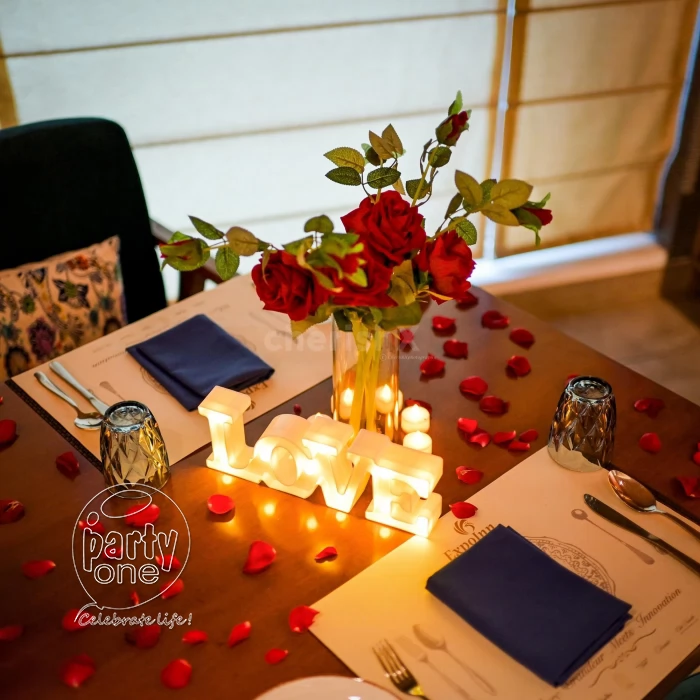 • Decorated table with candles & flowers at the restaurant Welcome Drinks or Alcoholic Beverages with serving time of 60 minutes