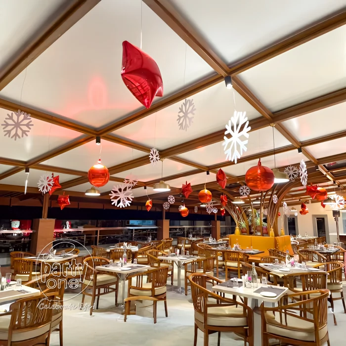 • 30 Red star and round foil balloon hangings inside the office and reception area