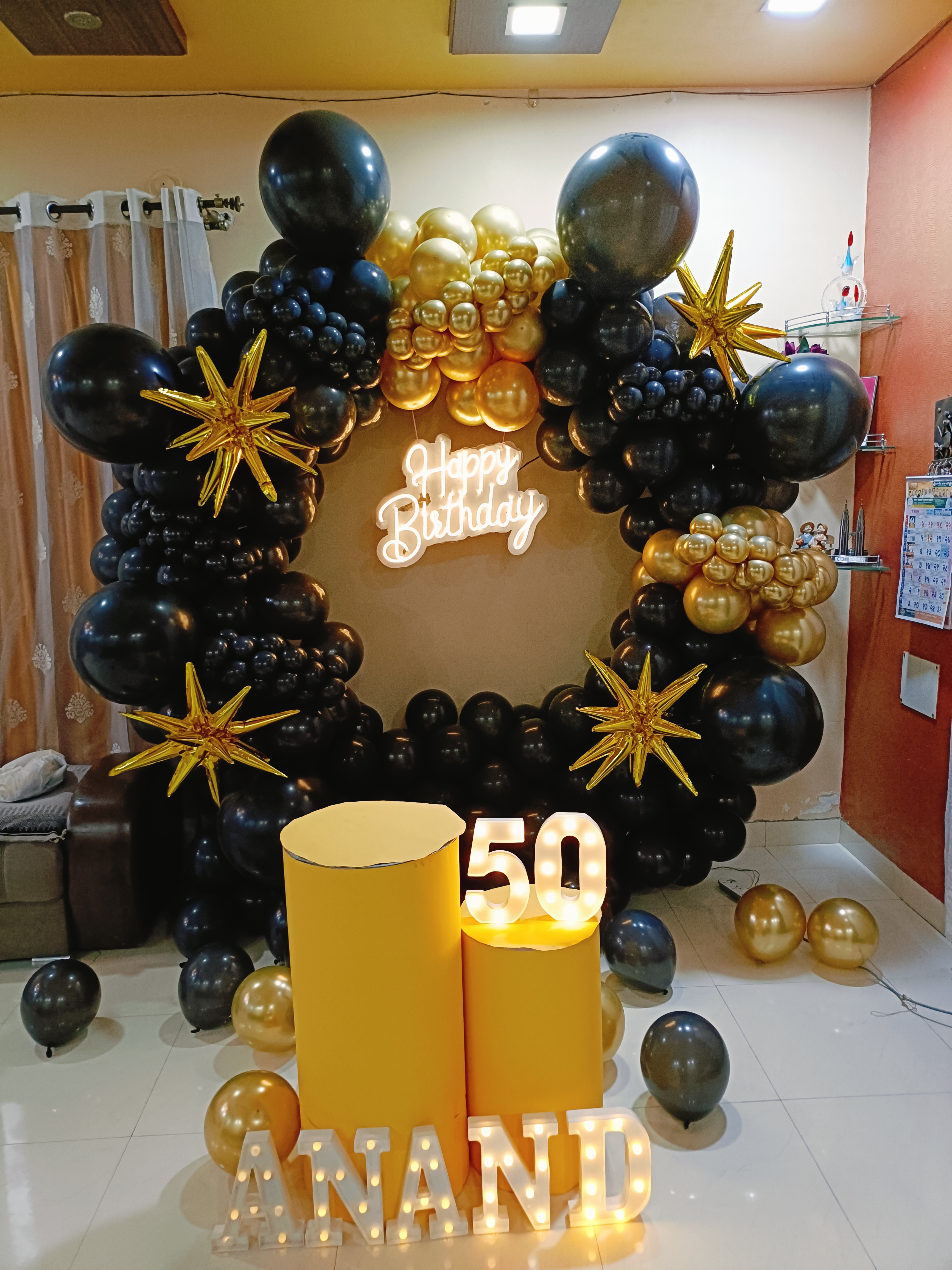 • Balloon arch of 400 balloons (Black and Rose gold color)