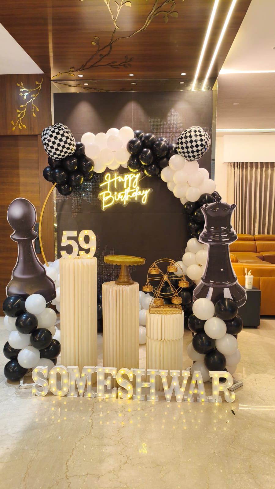 Timely service , easy to book over what’s app What’s promised for chess theme decor is delivered . Good quality balloons , lasts quite long
