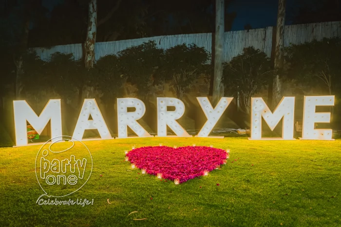 • "Marry Me" Letters with a big rose petals heart