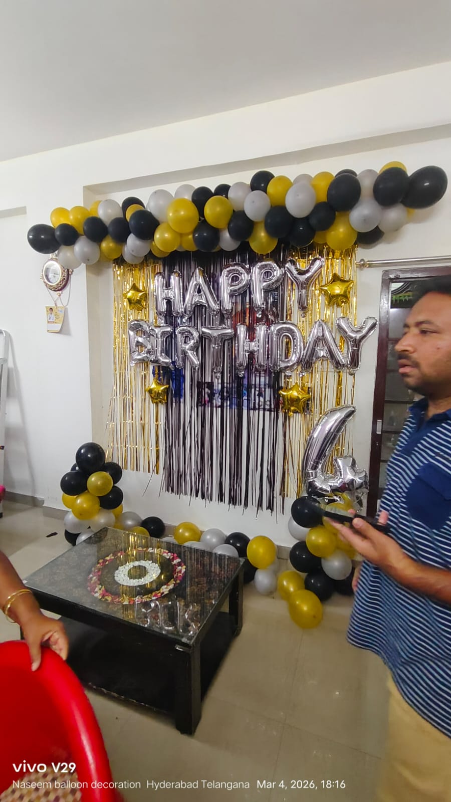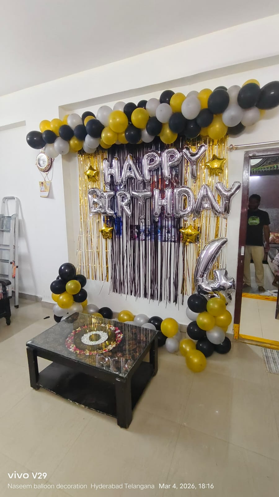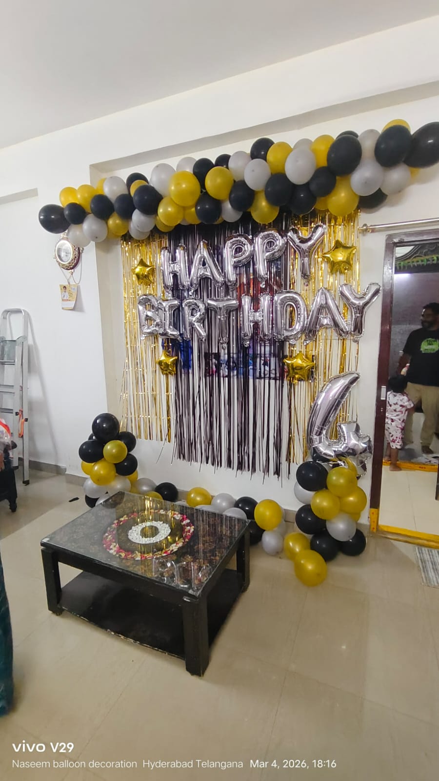 • Arch of 150 balloons (Black, Silver and Golden color)