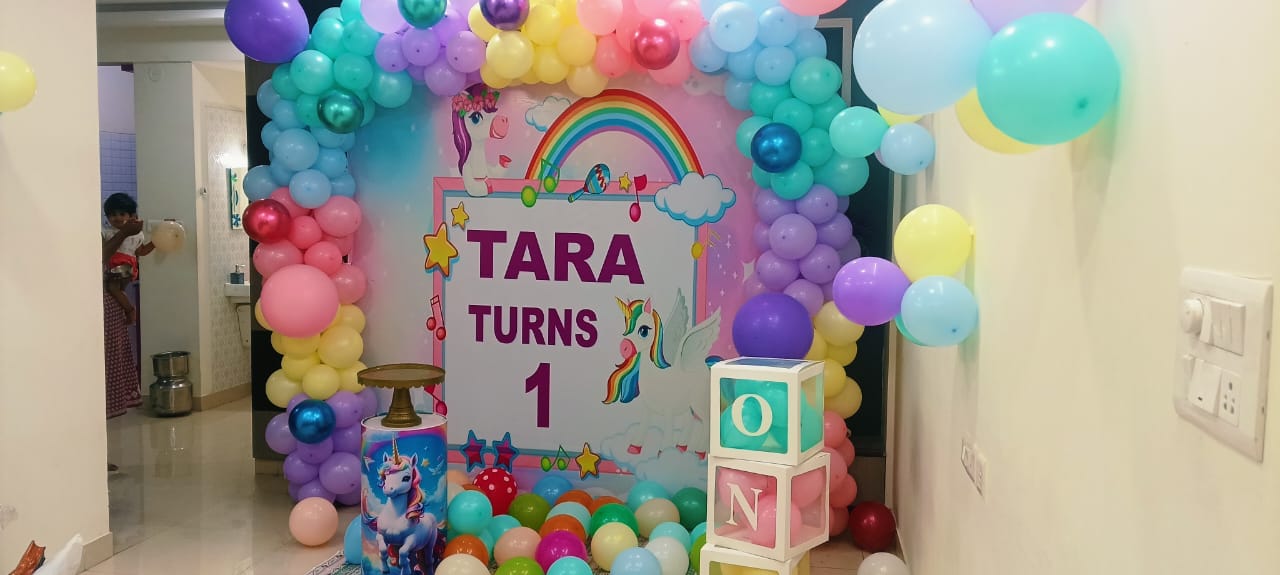 Planning something for a special day? Then surprise your loved one or kids with elegant birthday decoration that transforms any space into a celebration filled with joy, colours, balloons, and unforgettable moments. Whether it’s your child’s 1st birthday decoration, your partner’s milestone birthday celebration, or a surprise party celebration for your friend or parent, the right decoration can make them emotional and the moment magical. At PartyOne, we bring into their life those emotional and magical moments through birthday balloon decoration and customized solutions as per the need. From balloon arch, flower decor, ring decoration, birthday theme decoration to fairy LED lights, custom banners, and table arrangements. We ensure that we cover all the details to meet your requirements and budget. Our decoration services include customized decoration, pastel theme decoration, themed decorations, balloon garlands, and other surprises like live cartoon characters, magic show, 360 camera booths, and much more.Whether you’re hosting birthday decorations at home, in a hall, or outdoors — PartyOne ensures a stress-free and stunning decoration.