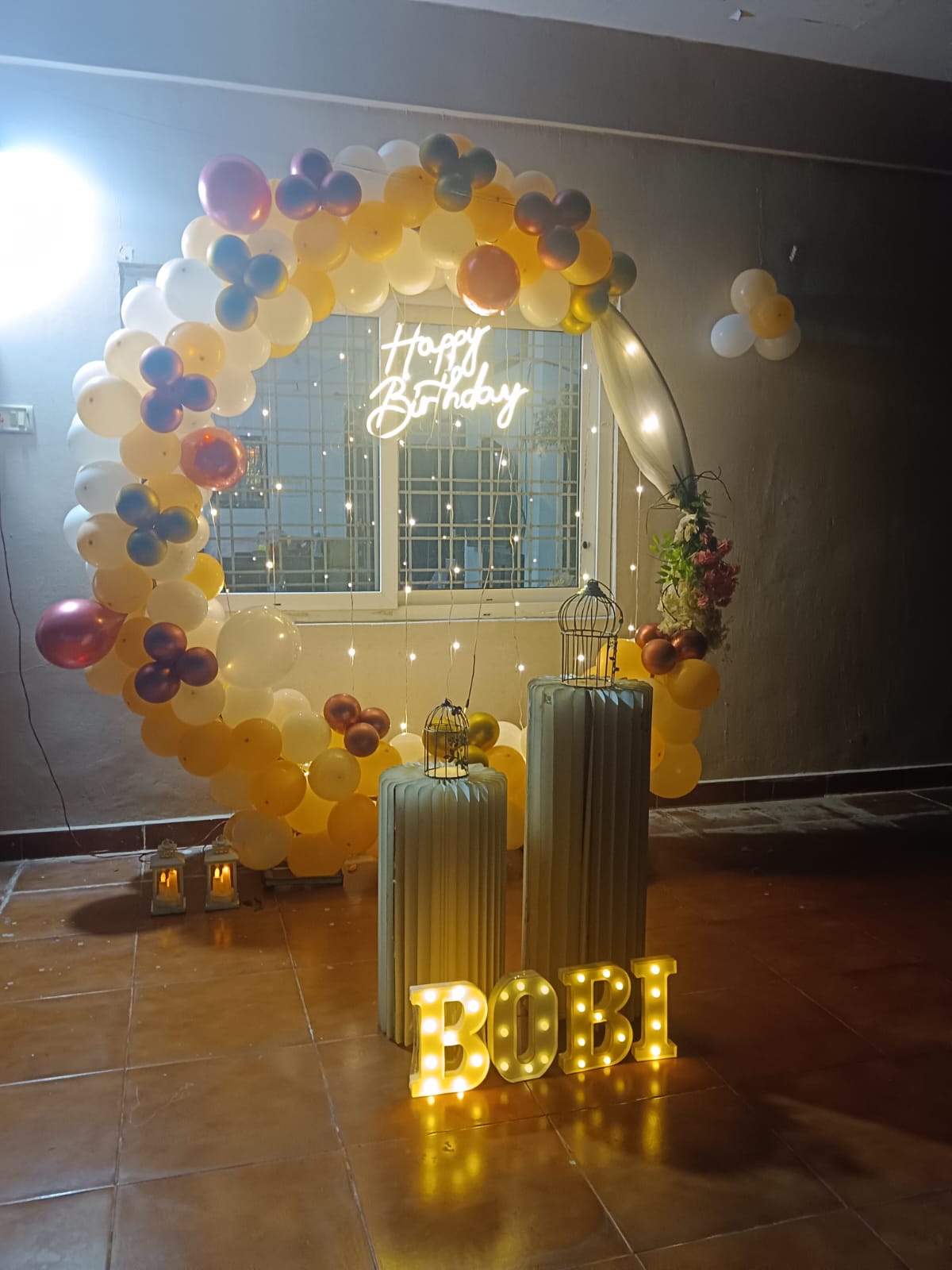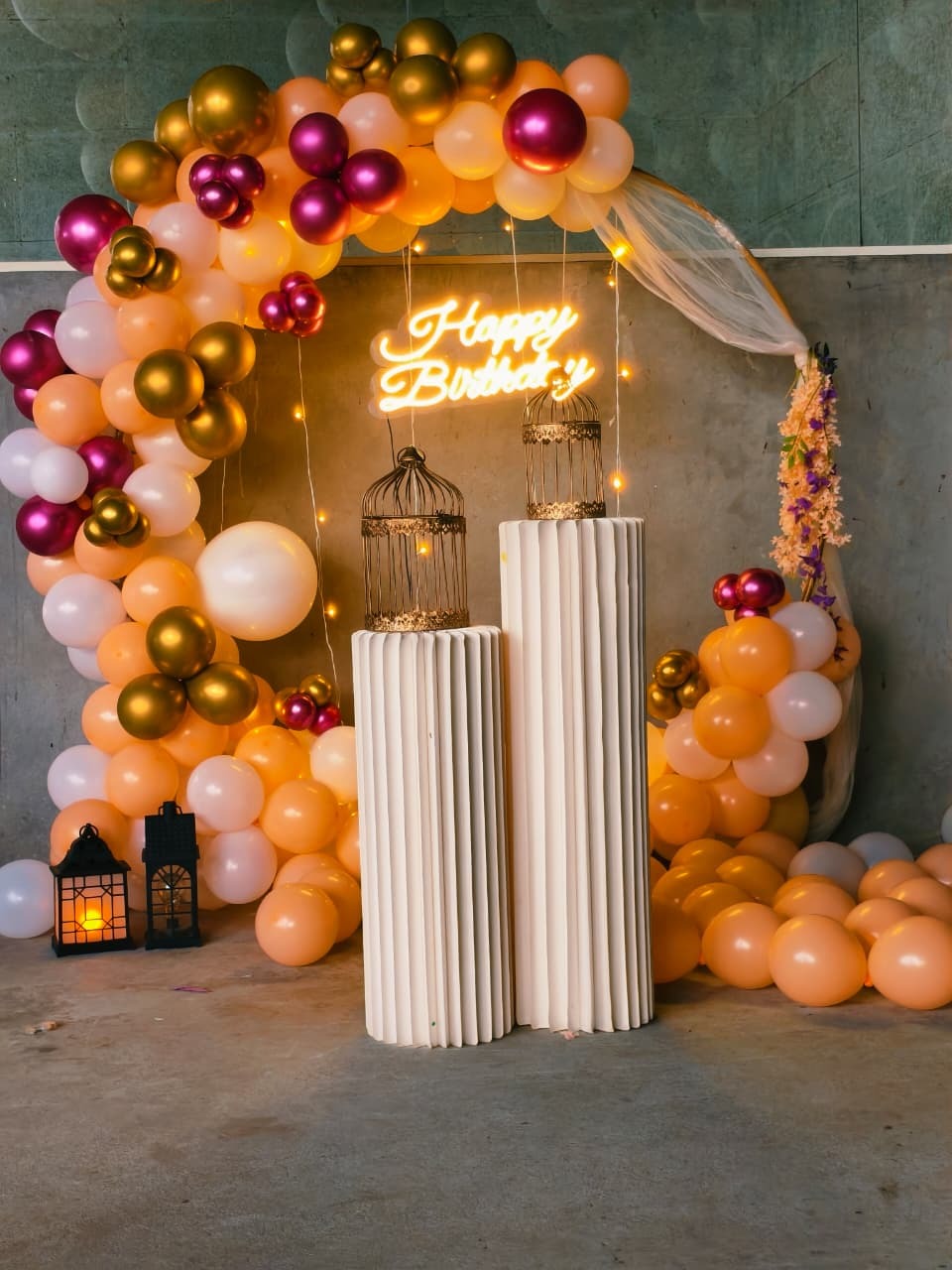 Planning something for a special day? Then surprise your loved one or kids with elegant birthday decoration that transforms any space into a celebration filled with joy, colours, balloons, and unforgettable moments. Whether it’s your child’s 1st birthday decoration, your partner’s milestone birthday celebration, or a surprise party celebration for your friend or parent, the right decoration can make them emotional and the moment magical. At PartyOne, we bring into their life those emotional and magical moments through birthday balloon decoration and customized solutions as per the need. From balloon arch, flower decor, ring decoration, birthday theme decoration to fairy LED lights, custom banners, and table arrangements. We ensure that we cover all the details to meet your requirements and budget. Our decoration services include customized decoration, pastel theme decoration, themed decorations, balloon garlands, and other surprises like live cartoon characters, magic show, 360 camera booths, and much more.Whether you’re hosting birthday decorations at home, in a hall, or outdoors — PartyOne ensures a stress-free and stunning decoration.