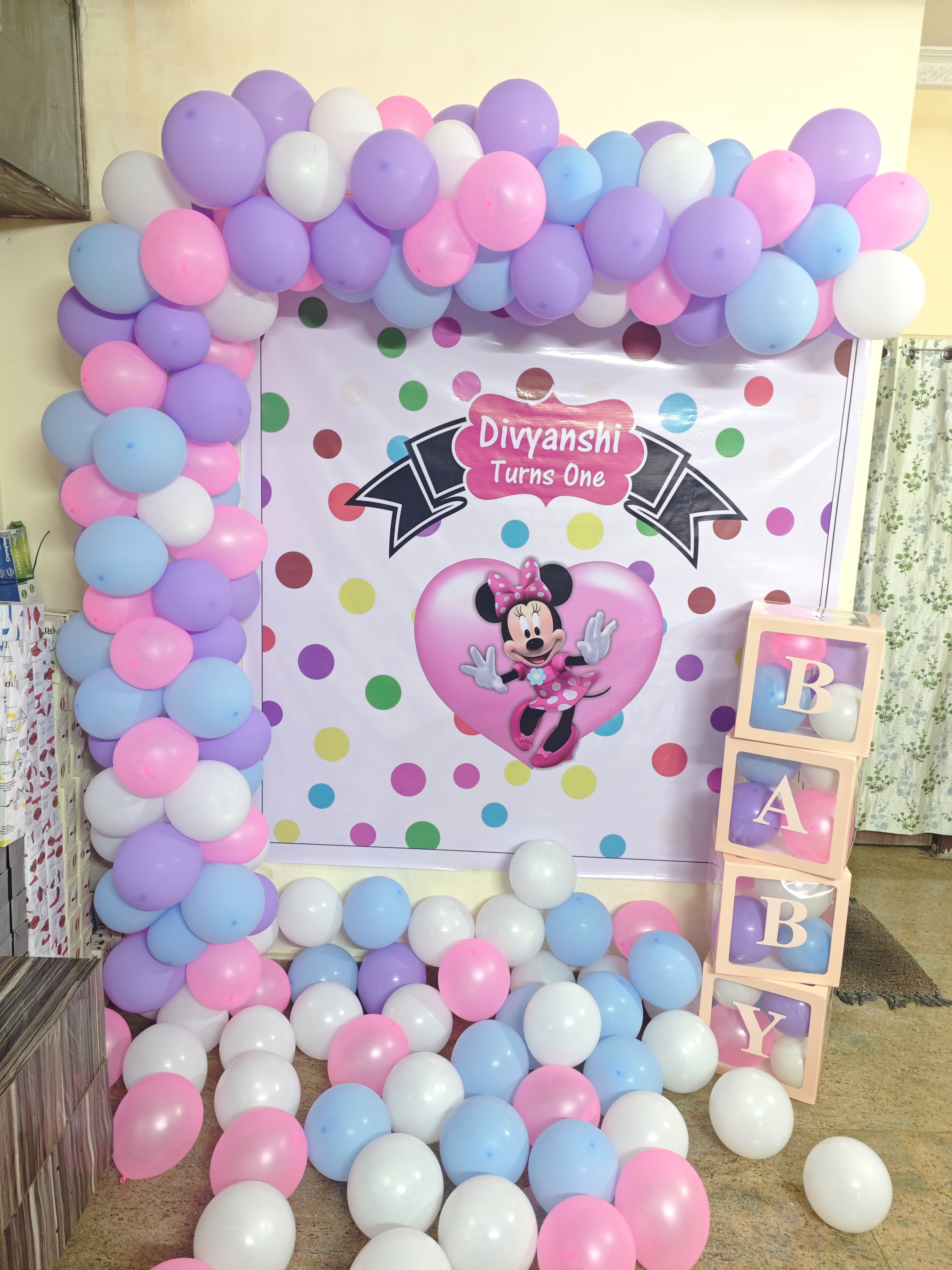 Planning something for a special day? Then surprise your loved one or kids with elegant birthday decoration that transforms any space into a celebration filled with joy, colours, balloons, and unforgettable moments. Whether it’s your child’s 1st birthday decoration, your partner’s milestone birthday celebration, or a surprise party celebration for your friend or parent, the right decoration can make them emotional and the moment magical. At PartyOne, we bring into their life those emotional and magical moments through birthday balloon decoration and customized solutions as per the need. From balloon arch, flower decor, ring decoration, birthday theme decoration to fairy LED lights, custom banners, and table arrangements. We ensure that we cover all the details to meet your requirements and budget. Our decoration services include customized decoration, pastel theme decoration, themed decorations, balloon garlands, and other surprises like live cartoon characters, magic show, 360 camera booths, and much more.Whether you’re hosting birthday decorations at home, in a hall, or outdoors — PartyOne ensures a stress-free and stunning decoration.