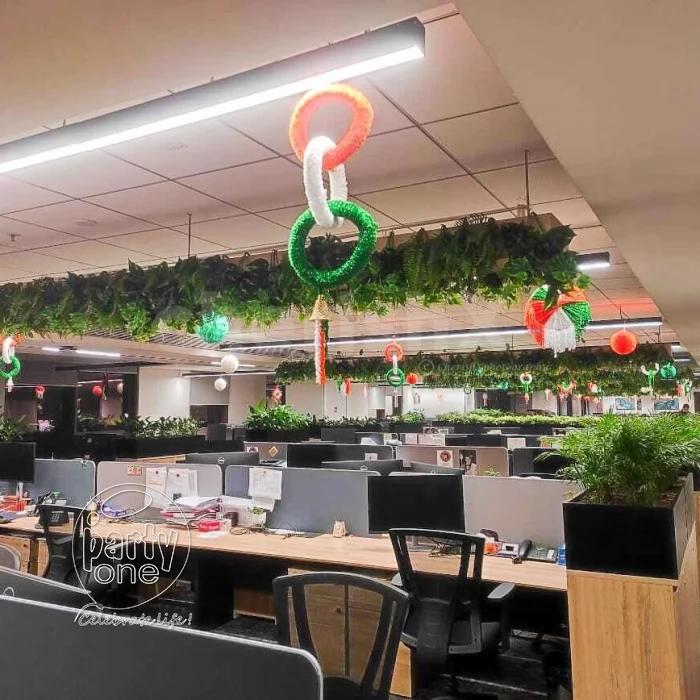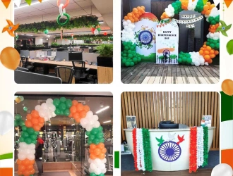 We offer festival decorations for different kinds of festivals. One of the best aspects of choosing PartyOne is that we offer custom home decoration for puja according to themes for different festivals. We understand that some people want to celebrate festivals uniquely and might not want to have the same diwali decorations as everyone else. No matter what festival you are celebrating, PartyOne has the perfect fsestival decorations at home to decorate your home, office, or any other space so that it reflects the festive ambiance. We cover a broad range of festivals, from traditional to contemporary. We bring the rich heritage of festivals such as Vinayaka Chavithi, Diwali, Navratri, Holy, and Sankranti to life with vibrant colors, traditional motifs, and symbolic elements. Our home decorations for puja to these festivals include beautiful rangoli designs, diyas, garlands, flower arrangements, and other traditional decor items that create an authentic and festive atmosphere. These festivals often involve family gatherings and poojas conducted by a pandit. We use trendy themes, balloons, playful props, and dazzling lighting effects for modern celebrations such as Halloween, New Year's Eve, and music festivals. From cobwebs and ghosts for a haunting Halloween to neon lights and disco balls for a rocking New Year's Eve, we have everything to create a stylish and unforgettable celebration. We also cater to national and patriotic celebrations like Republic Day and Independence Day. Thematic balloon arrangements in the national colors will add a touch of grandeur, while patriotic bunting and flags will fill your space with a sense of national pride. We use festival decoration at home that evoke a sense of pride and patriotism, creating a fitting tribute to these significant days.