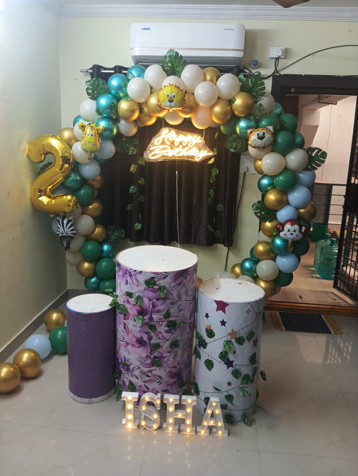 Tips for Balloon Decoration for Birthday Party. If you're planning for your birthday or for you kid, here are tips and ideas you can make your birthday decoration at home even more attractive. Whether you're planning a kid's birthday or an adult party. Choosing Pastel balloon decoration and soft colours makes the event more colourful. Using colours like peach, mint green, lavender, baby pink are perfect for birthday balloon decoration. Metallic or chrome balloons are good if you're looking for premium decoration, using colours like gold, rose, silver and deep blue give your birthday party a premium feel with good looking mainly when it is paired with candles and LED lights. If you're more into sustainable birthday decoration, then go for eco-friendly balloon decoration or you can pair them with reusable frames, fabric drapes, ring stands for a beautiful and planet-friendly celebration.