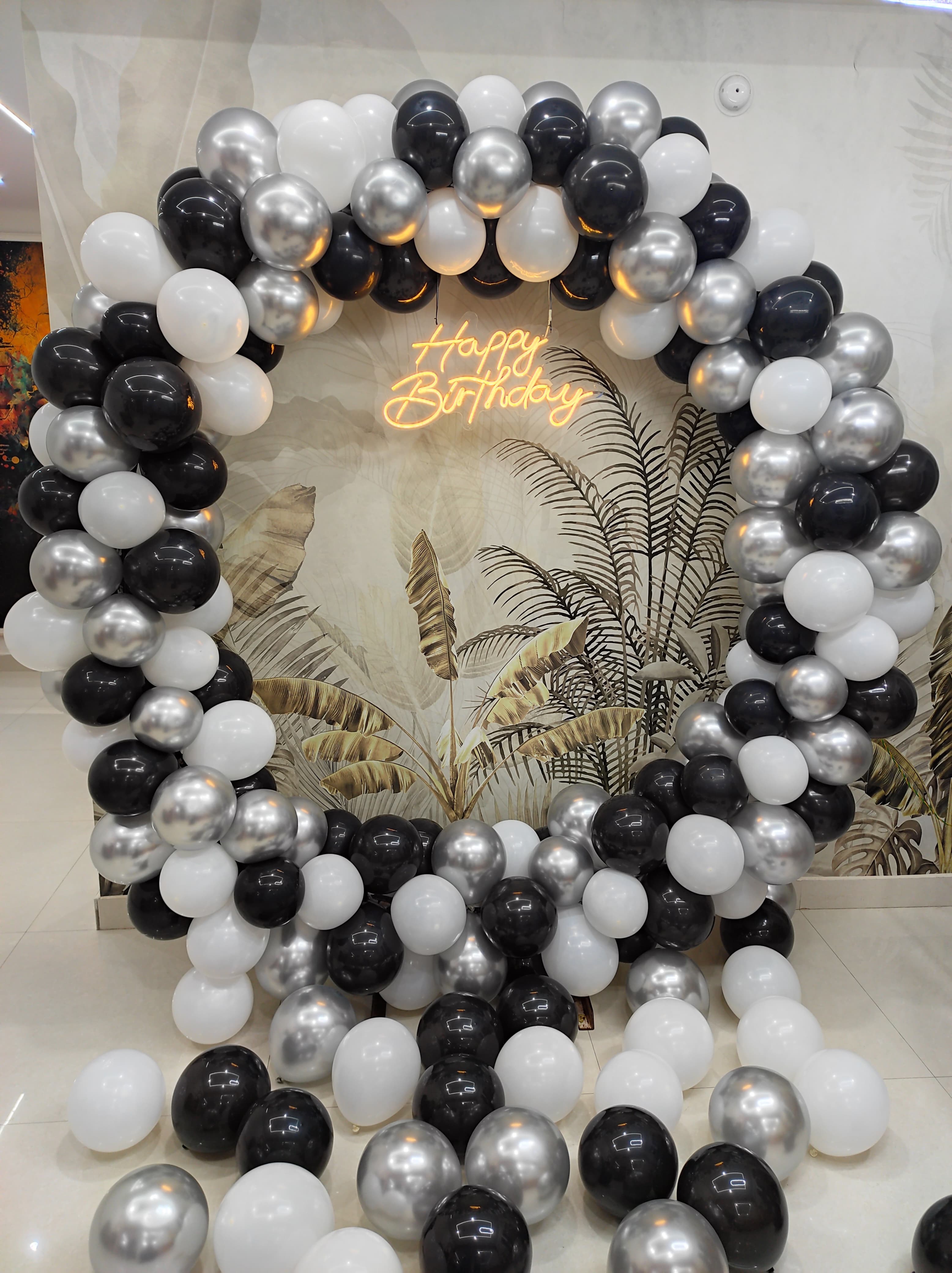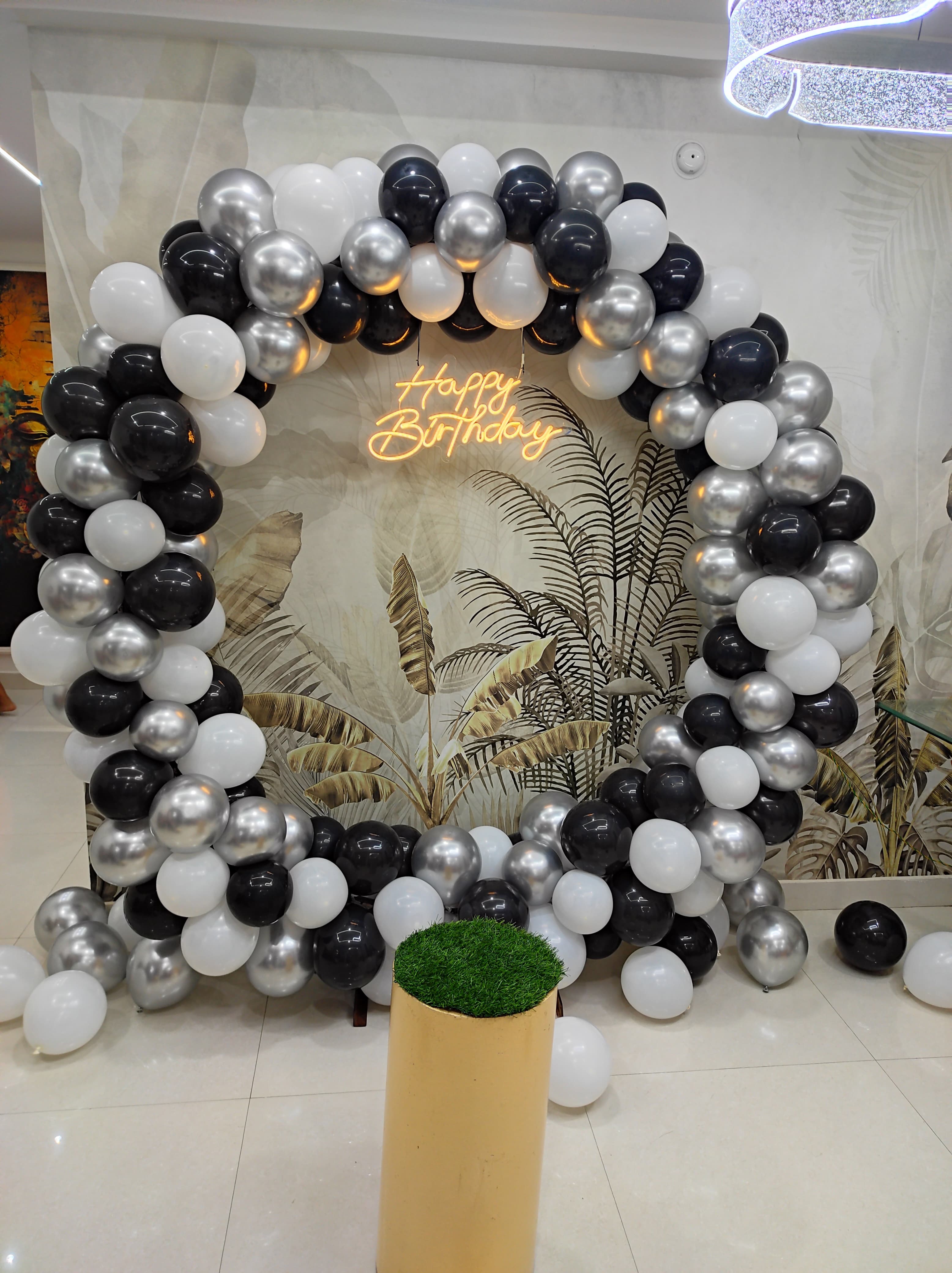 • Arch of 200 balloons (Orange, White, Chrome gold and Black latex)