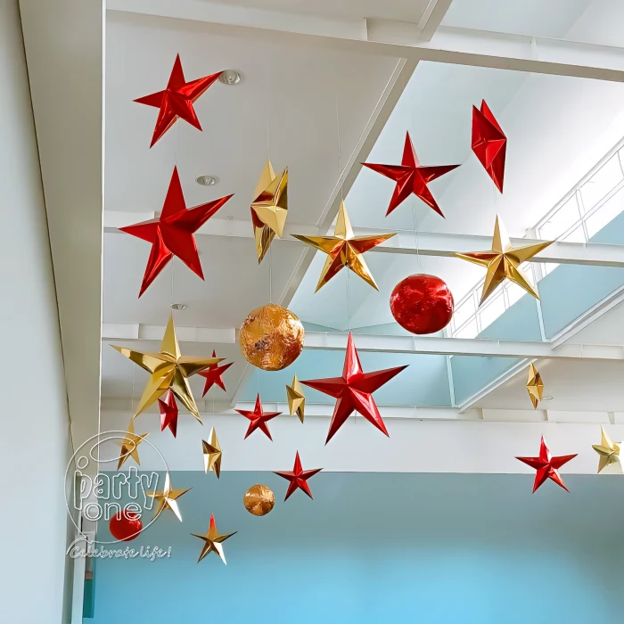 • 30 Ball Paper hangings inside the office (Gold and Red)
