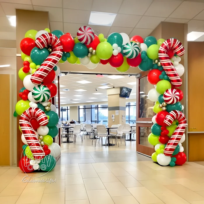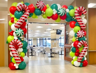 • Entrance Arch of 150 Balloons (White, Green, Metallic dark green and Metallic red)