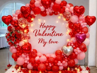 • 360 balloons complete ring decoration (colors: Red latex balloons, light pink/blush balloons,Confetti balloons, Jumbo balloons)