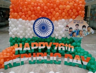 • 1 set of 3D Standing Letter Cutouts – “HAPPY 76th REPUBLIC DAY”(Tricolour foam board letters, Height: 1.5–2 ft per letter)