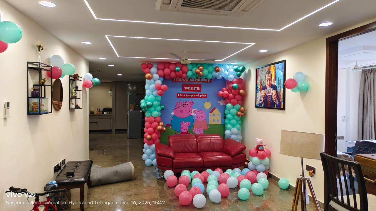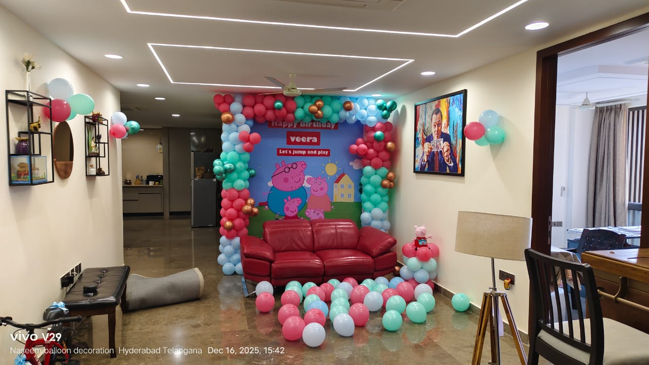 Party one wale bhaiya came for setting up peppa pig theme decoration. He was very fast and polite.