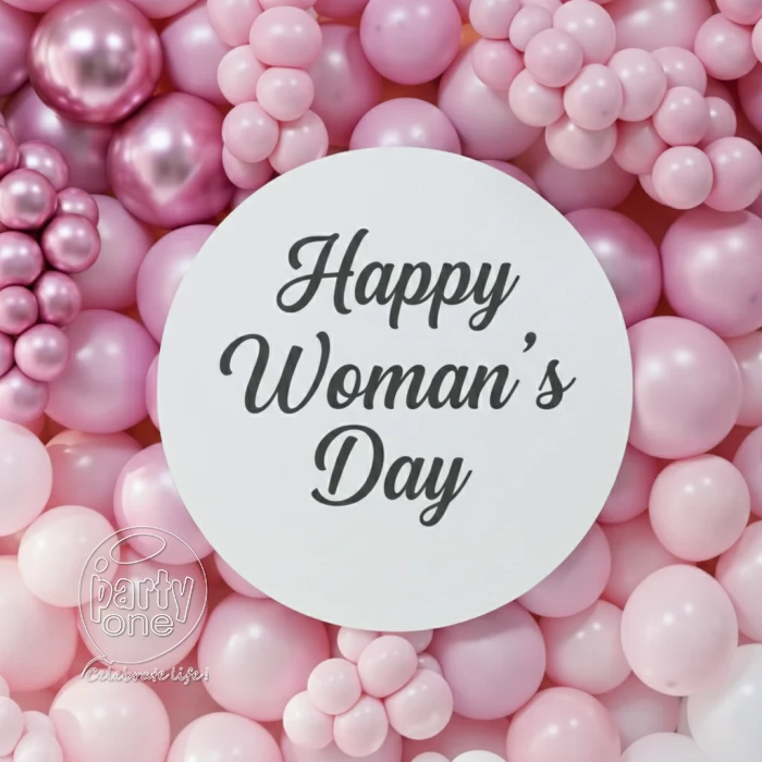 • 1 2.5–3 foot round foam/sunboard sign ("Happy Woman's Day" print)