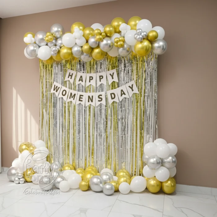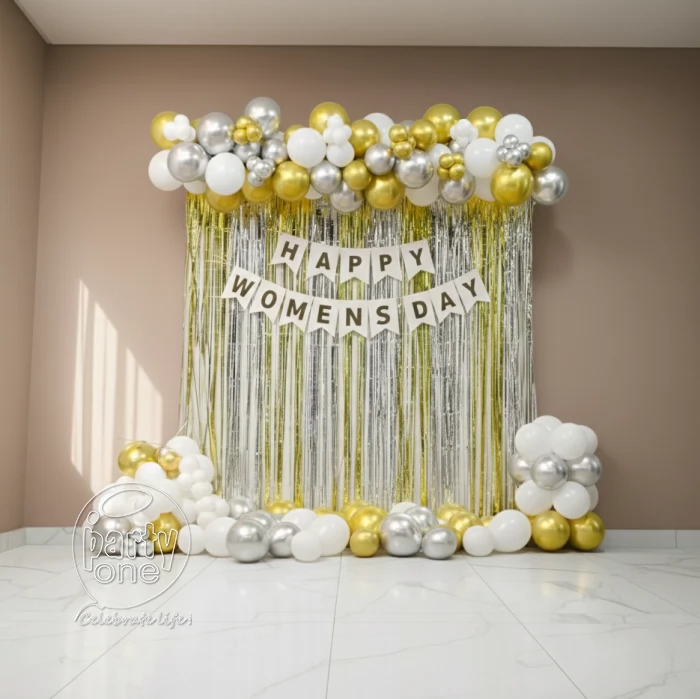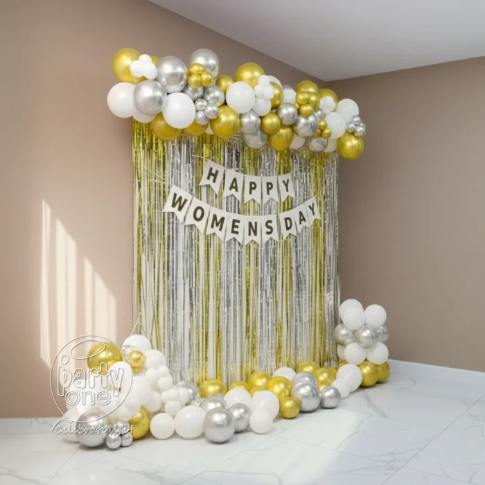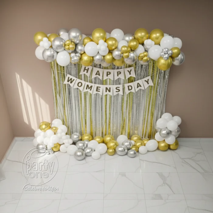 Silver Gold Sparkle Womens Day Balloon Decoration - Noida