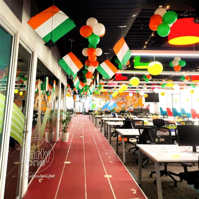 We offer festival decorations for different kinds of festivals. One of the best aspects of choosing PartyOne is that we offer custom home decoration for puja according to themes for different festivals. We understand that some people want to celebrate festivals uniquely and might not want to have the same diwali decorations as everyone else. No matter what festival you are celebrating, PartyOne has the perfect fsestival decorations at home to decorate your home, office, or any other space so that it reflects the festive ambiance. We cover a broad range of festivals, from traditional to contemporary. We bring the rich heritage of festivals such as Vinayaka Chavithi, Diwali, Navratri, Holy, and Sankranti to life with vibrant colors, traditional motifs, and symbolic elements. Our home decorations for puja to these festivals include beautiful rangoli designs, diyas, garlands, flower arrangements, and other traditional decor items that create an authentic and festive atmosphere. These festivals often involve family gatherings and poojas conducted by a pandit. We use trendy themes, balloons, playful props, and dazzling lighting effects for modern celebrations such as Halloween, New Year's Eve, and music festivals. From cobwebs and ghosts for a haunting Halloween to neon lights and disco balls for a rocking New Year's Eve, we have everything to create a stylish and unforgettable celebration. We also cater to national and patriotic celebrations like Republic Day and Independence Day. Thematic balloon arrangements in the national colors will add a touch of grandeur, while patriotic bunting and flags will fill your space with a sense of national pride. We use festival decoration at home that evoke a sense of pride and patriotism, creating a fitting tribute to these significant days.