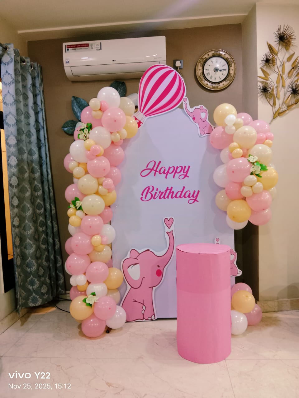 • Arch of 150 balloons(Sky blue, White and Light Brown)