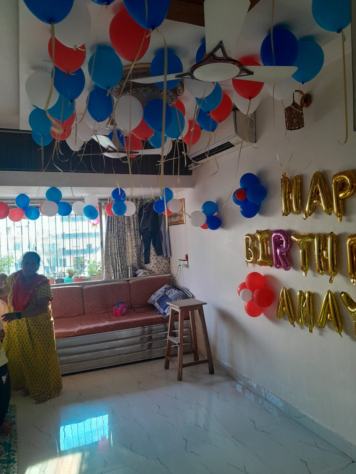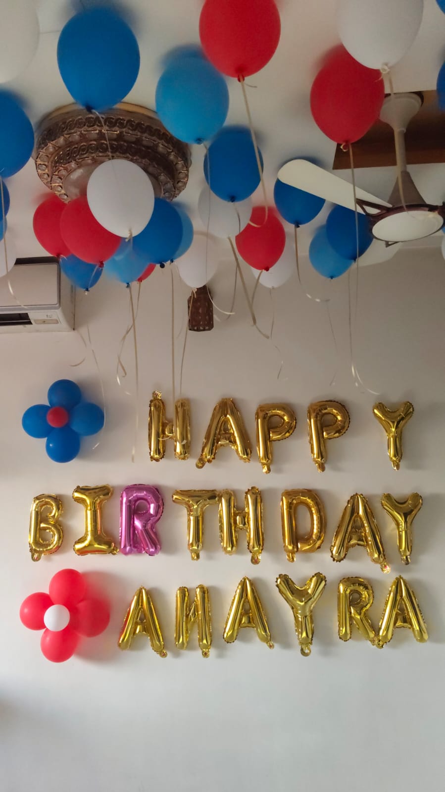 • 1 set of blue foil letter balloons—"HAPPY BIRTHDAY"