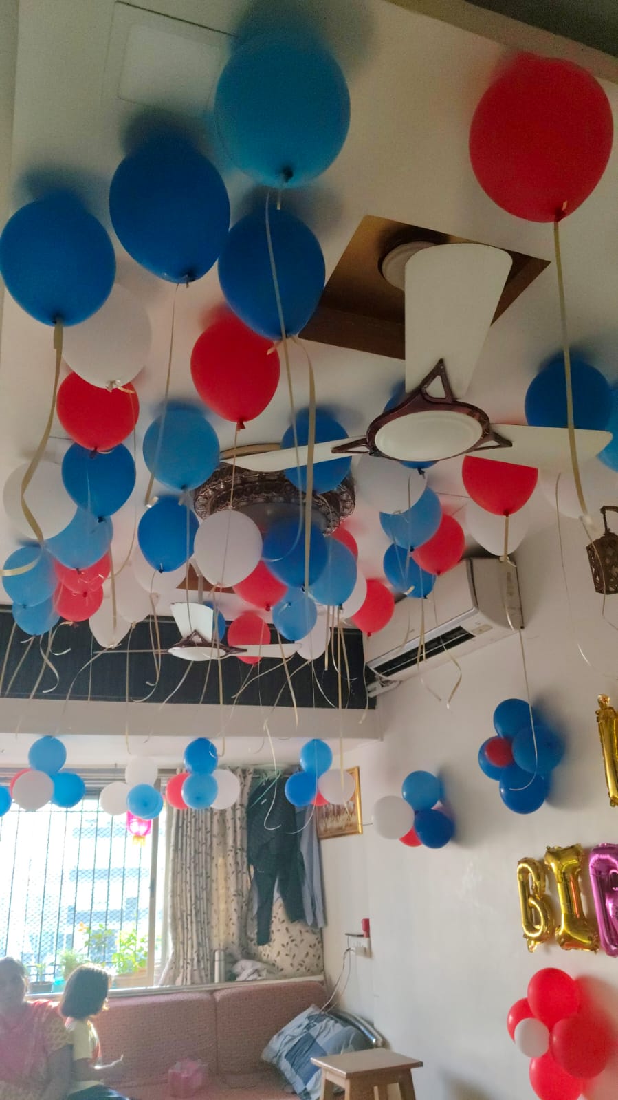 • 30 pcs Blue, Sky Blue & White Balloons (Ceiling Hanging with Ribbons)