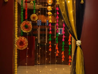 PartyOne specializes in providing beautiful festival decorations at home for various festivals, each designed to capture the occasion's unique spirit and cultural essence. Our extensive range of services ensures that every celebration is adorned with perfect decor, creating an enchanting atmosphere that enhances the festive experience. For Diwali, our diwali decorations at home include traditional elements like rangolis, diyas, and fairy lights that illuminate your space with warmth and positivity. Our team can draw intricate rangoli patterns and place diyas beautifully to create a mesmerizing effect. The addition of fairy lights enhances the festive ambiance, making your home or venue glow with joy. We have tricolor backdrops and thematic balloon arrangements for Republic Day, Independence Day, and other patriotic occasions. Navratri or Diwali decorations are characterized by vibrant colors, traditional motifs colors, and devotional themes that set the stage for energetic dandiya and garba nights. We can add a beautiful mandir (prayer altar) backdrop for families to perform daily pujas. Halloween is all about spooky fun, and our festival decorations at home are designed to deliver just that. We offer a range of props, such as themed balloon decor, eerie lighting setups, pumpkin decor, etc. Christmas or Diwali decorations at PartyOne are all about elegance and festivity. We provide beautifully decorated Christmas trees, festive balloon decoration at home, and cozy backdrops that reflect the joy of the season. New Year's Eve is another occasion that calls for spectacular festival decorations. We offer elegant balloon setups, champagne-themed props, sequined fabrics, and glittering backdrops that set the tone for a grand celebration.