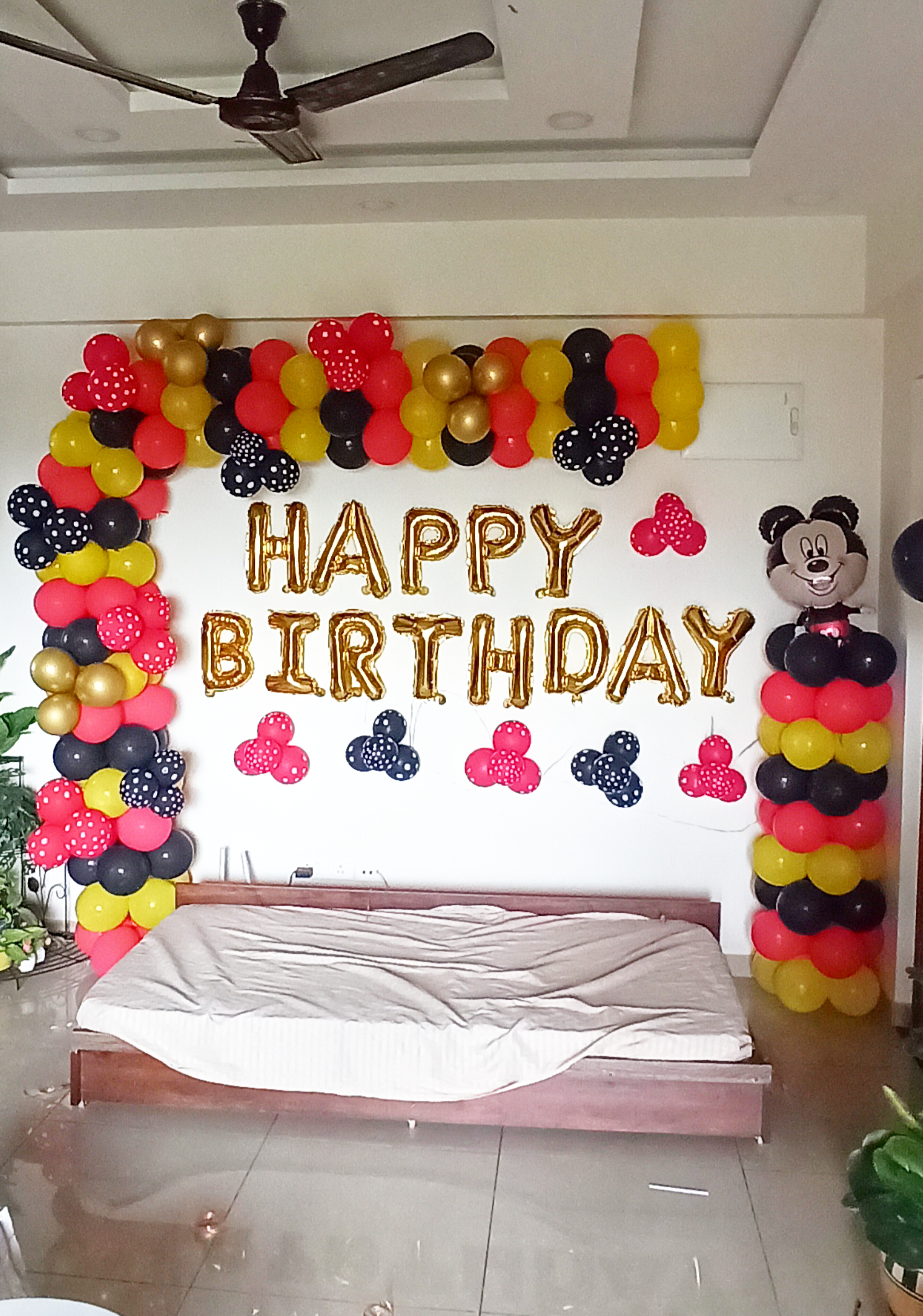 Planning for birthday celebrations at home, you don’t need to spend a lot to make it special. Here are some easy and affordable simple birthday decoration ideas at home that you can try. Balloon Decoration: Use colourful balloons like pastel colours, jungle theme colours, to decorate the wall with some foils. You can make a simple balloon arch or balloon bunch for the cake cutting area. Create a ready-made or DIY happy birthday banner to add a special love for your loved ones. Paper Decoration: Using different colour paper and make stars, hearts. Tape them on the wall or hang them from the ceiling for a better look. Add LED lights to the decoration to create a warm and beautiful environment. Make some DIY photo booth using balloon decoration, curtains, and some props — it is a great way to create memories. Here are some types of birthday decoration at home: birthday room decoration, terrace decoration, balcony decoration. Want hassle-free birthday decoration at home ? Contact PartyOne for easy, quick, and budget-friendly setup!